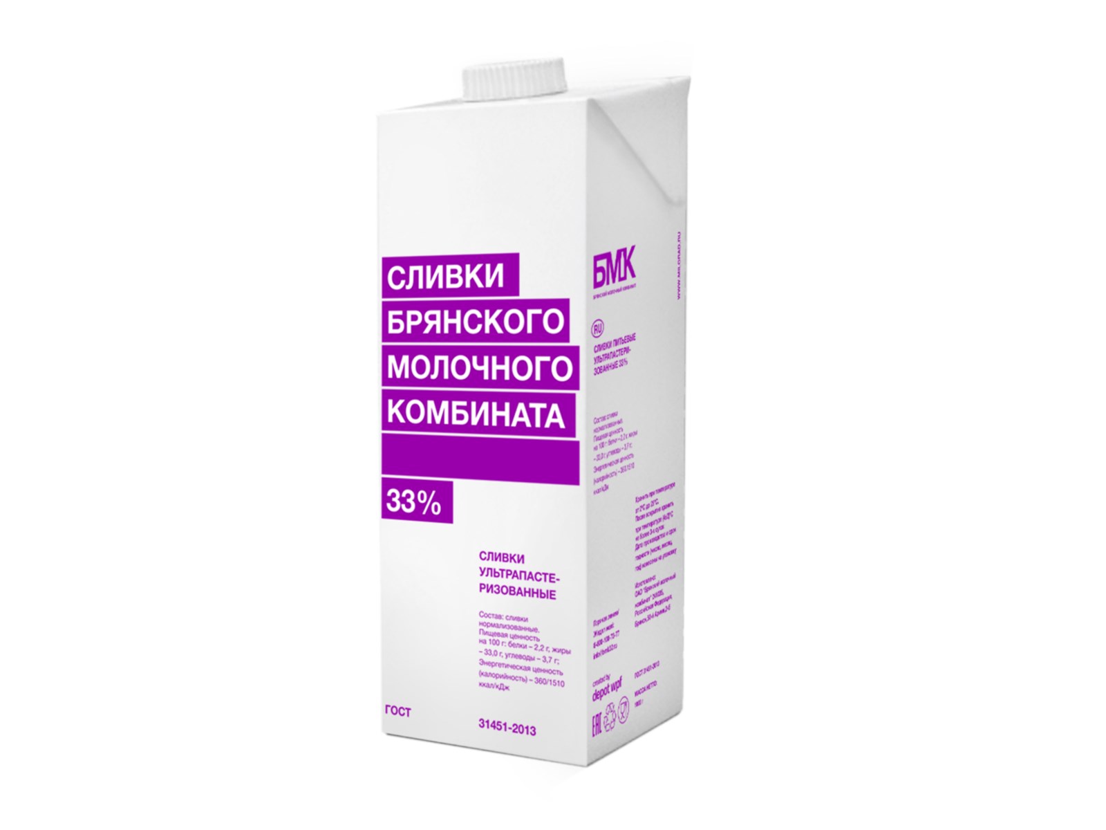 Сливки молочные Брянский молочный комбинат ультрапастеризованные 33%, 0,5 кг