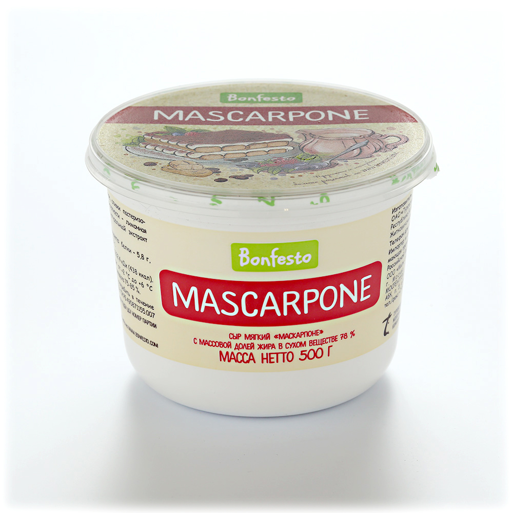 Сыр сливочный Маскарпоне 78% 500 г, Bonfesto, Беларусь