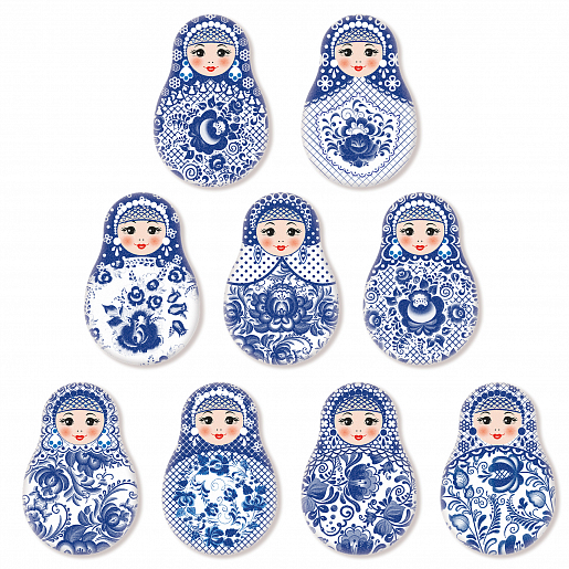Сахарные Медальоны "Матрешки Гжель, 35х23 мм