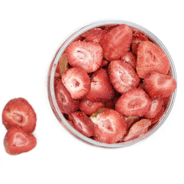 Сублимированные кусочки клубники используется в качестве добавки и декора в кондитерских изделиях.