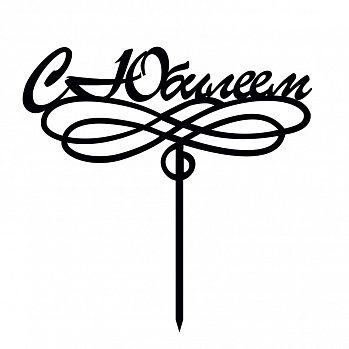 Топпер "С Юбилеем, завиток" черный 7*15 см