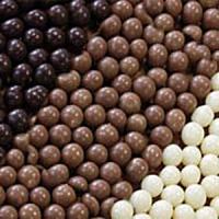 Хрустящие сферы диаметром от 3 до 8мм, покрытые белым шоколадом.