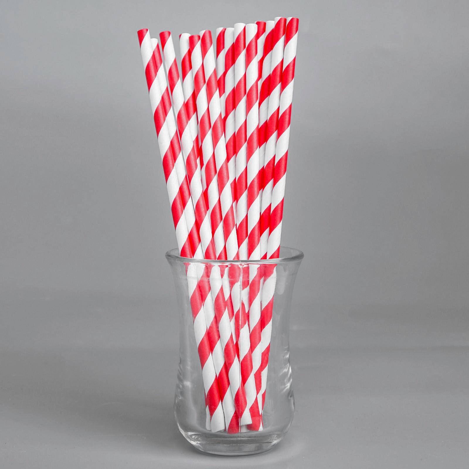 Трубочки бумажные "Красно-белый Леденец" в индивидуальной упаковке 200 мм