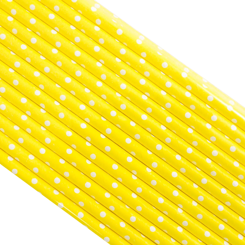 Палочки бумажные Желтая в Белый горох 200*6 мм, 25 шт