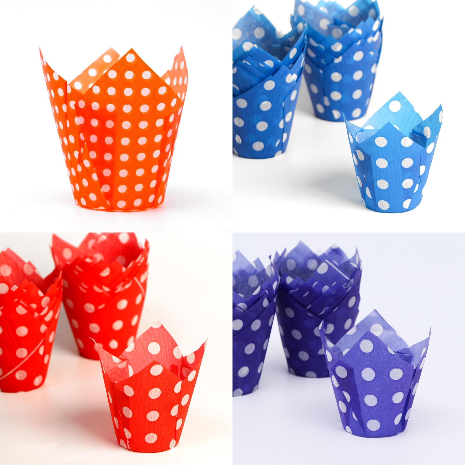-Форма бумажная "Тюльпан" в белый горошек, 50*80 мм, 10 шт
