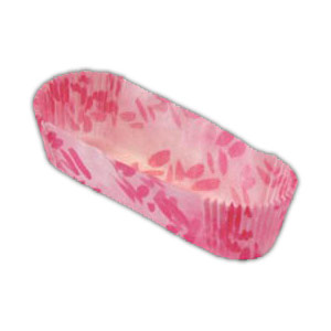 Гофрированная капсула из пергаментной бумаги овальной формы, с фантазийным рисунком для упаковки кондитерских изделий, размер дна 30х105 мм, высота бортика 27 мм. Плотность бумаги 55 г/м2.