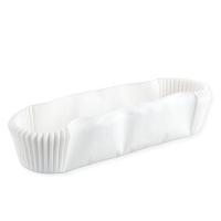 Гофрированная капсула из пергаментной бумаги овальной формы, белого цвета для упаковки кондитерских изделий, размер дна 30х105 мм, высота бортика 27 мм. Плотность бумаги 55 г/м2.