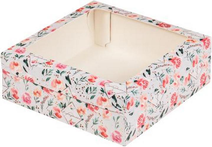 Коробка для зефира, тортов и пирожных с крышкой и окном 200х200х70 мм, С праздником, Розы РУ.