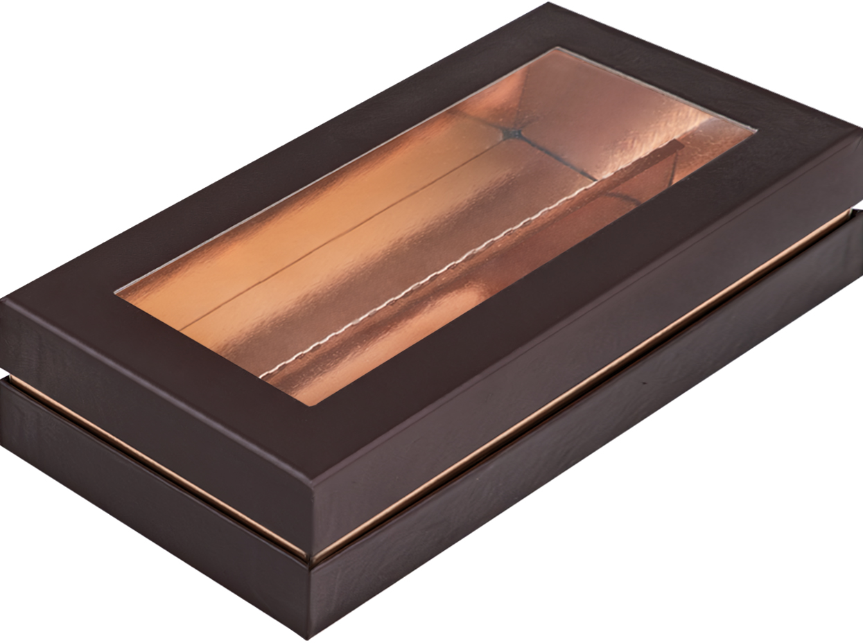 Коробка для макарон прямоугольное окно Люкс 210х110х55 мм, шоколад РУ.