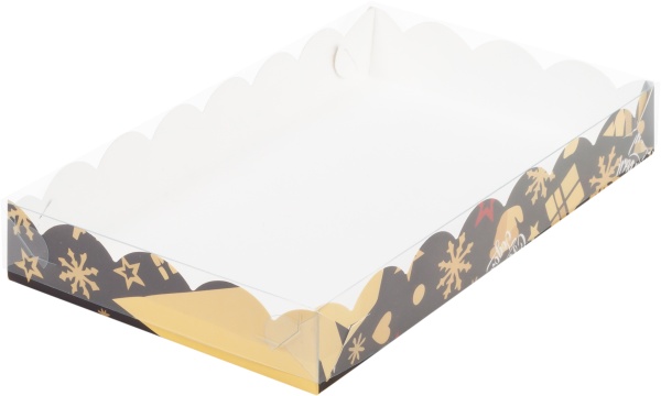 Коробка для печенья 220х150х35 мм Елка черно/золотая РУ.