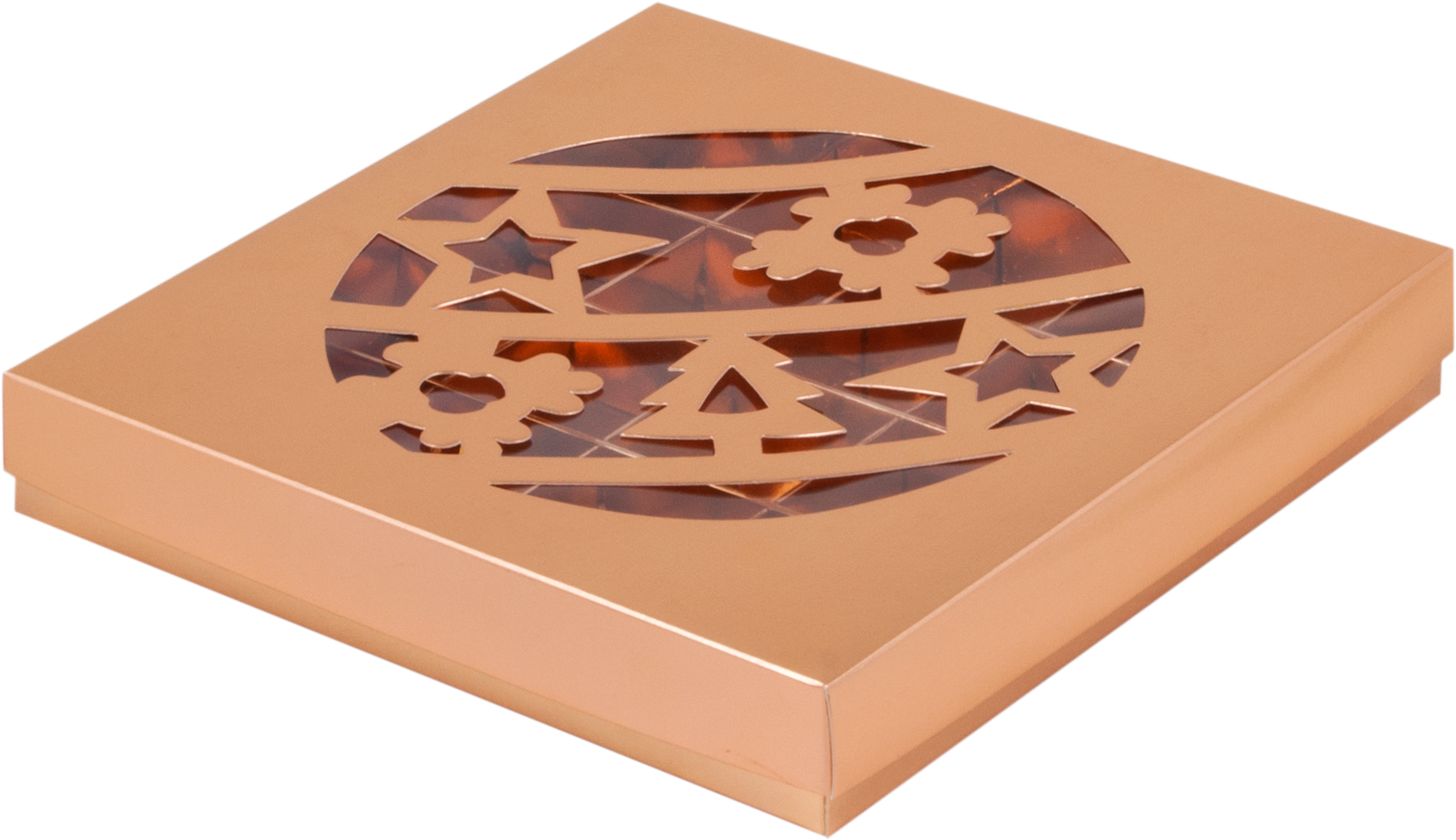 Коробка для конфет 16 шт с окном Новогодний шар 200х200х30 мм золото РУ.
