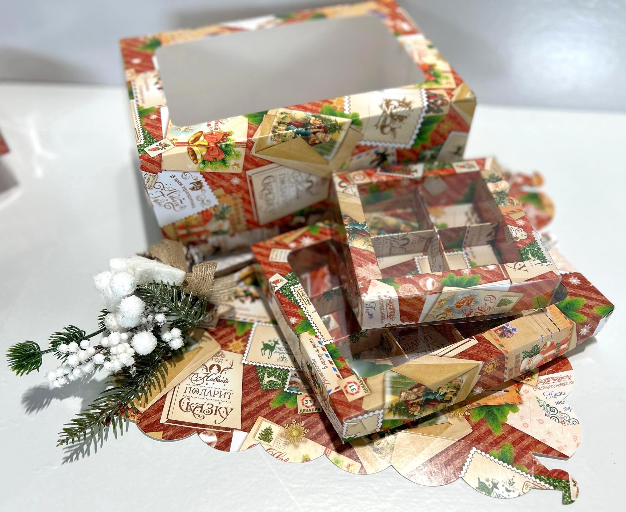 Коробка на 6 капкейков С ОКНОМ 235х160х100 мм Новогодние открытки РУ.
