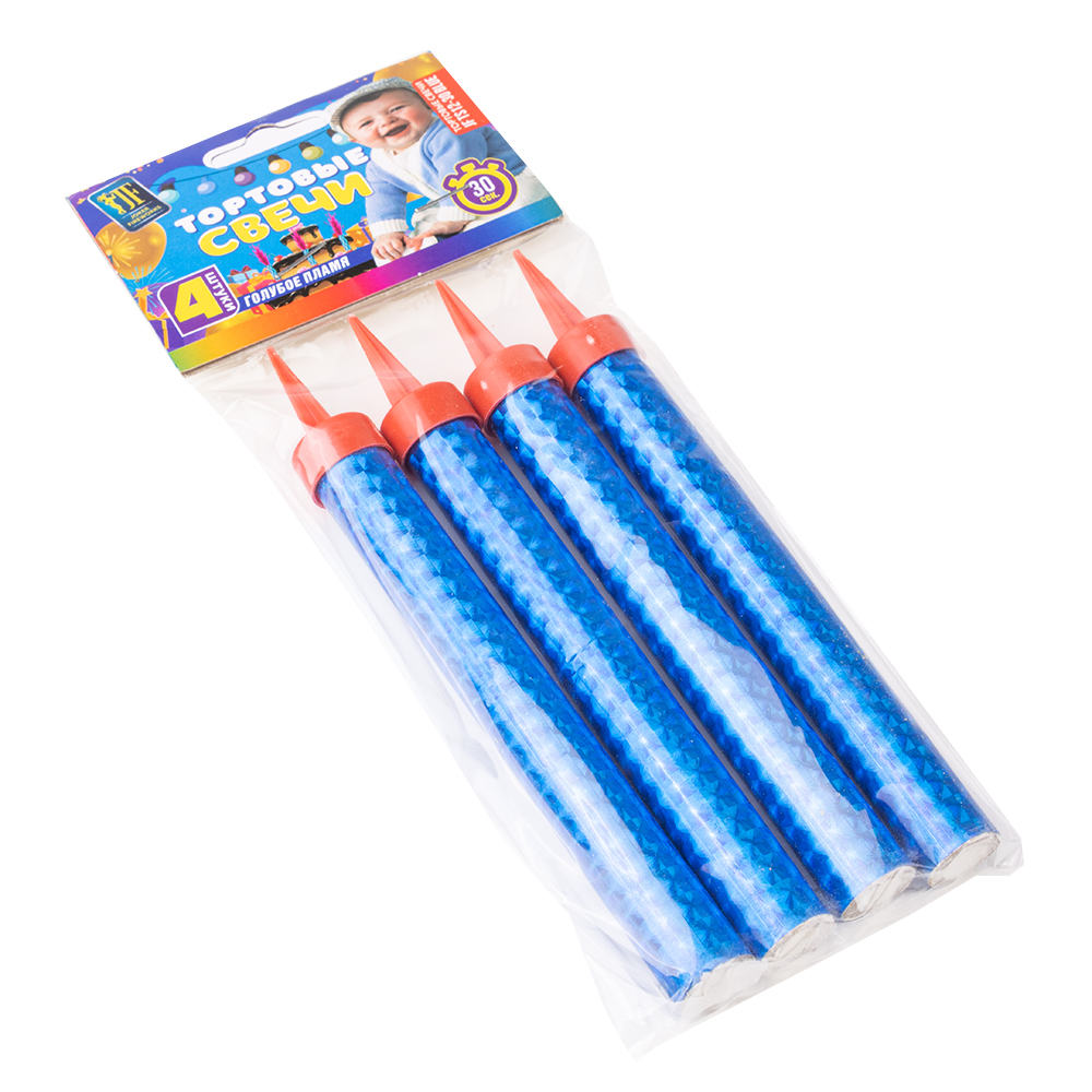 Свечи для торта римские фонтаны "Для мальчика" голубые 12 см, 4 шт