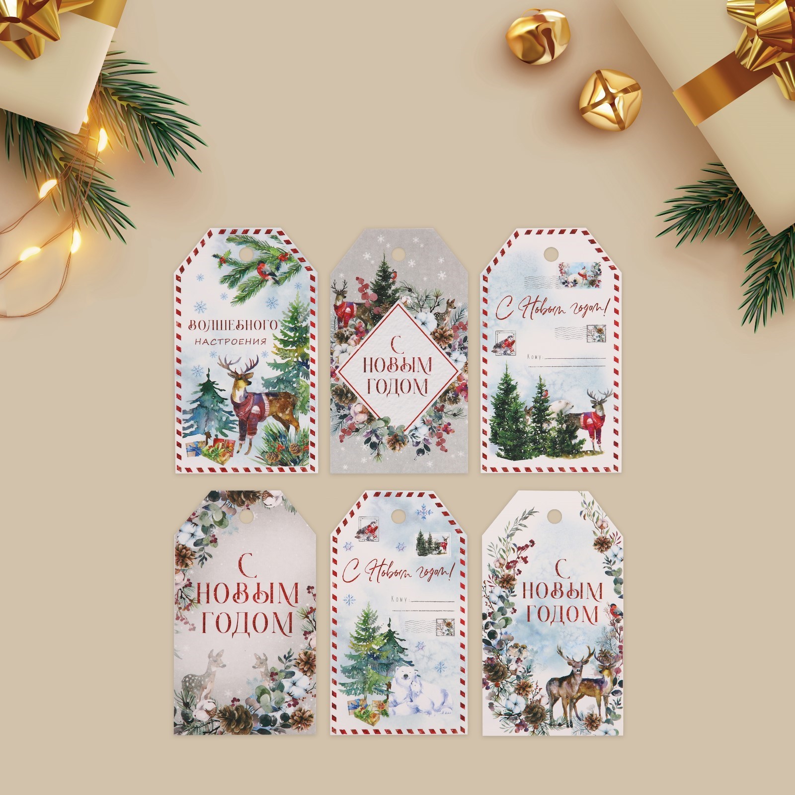 Шильдик новогодний декоративный в наборе «Волшебный праздник», 6 шт., 9×5 см