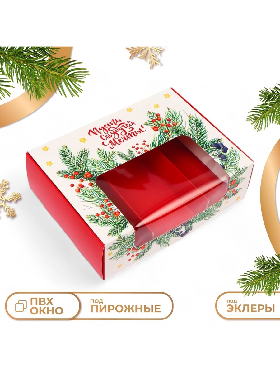 Коробка под 3 эклера с вкладышами новогодняя «Пусть сбываются мечты», 20×15×6 см