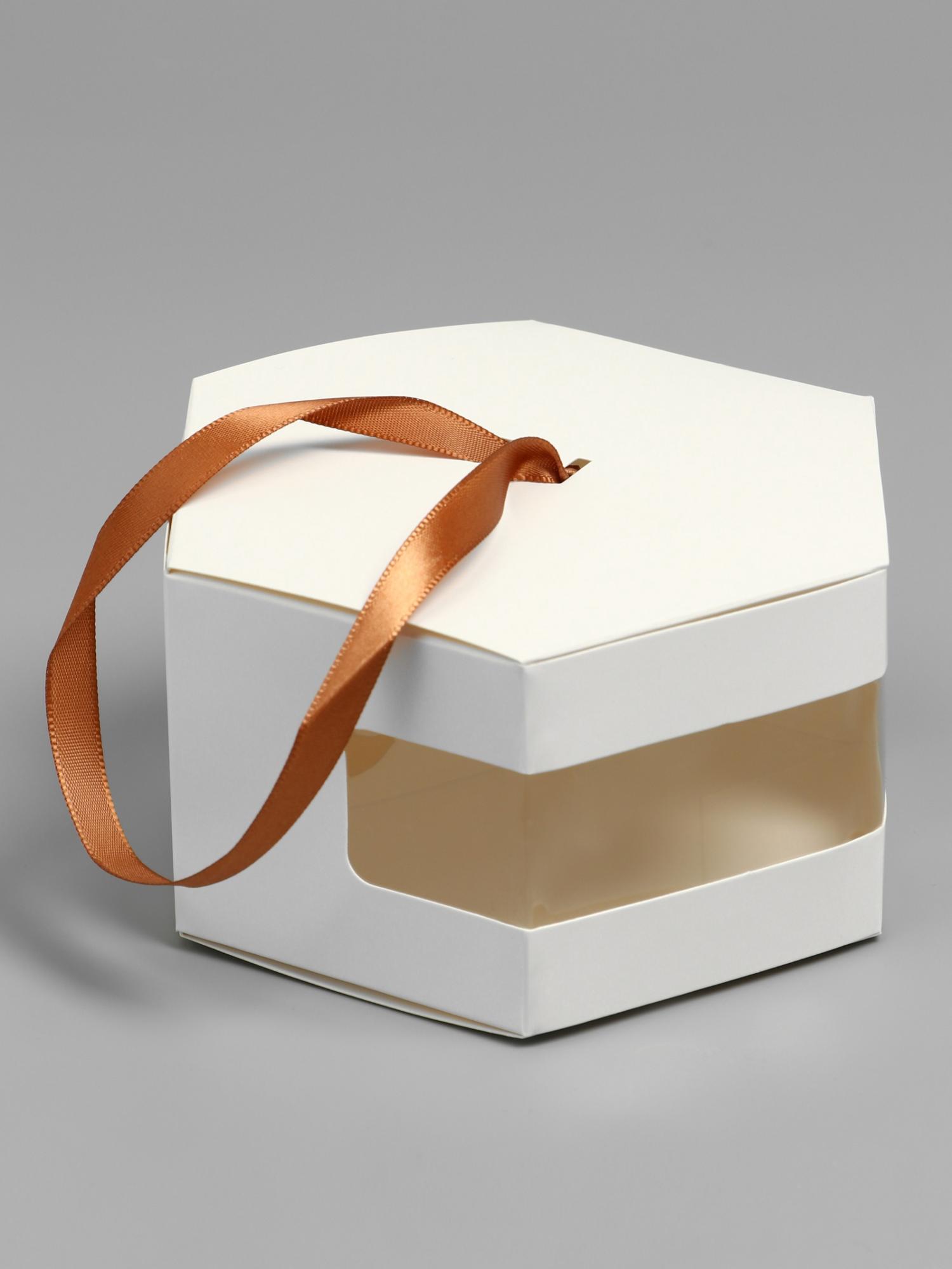Коробка шестигранная, с окном, белый, 20×12×7 см