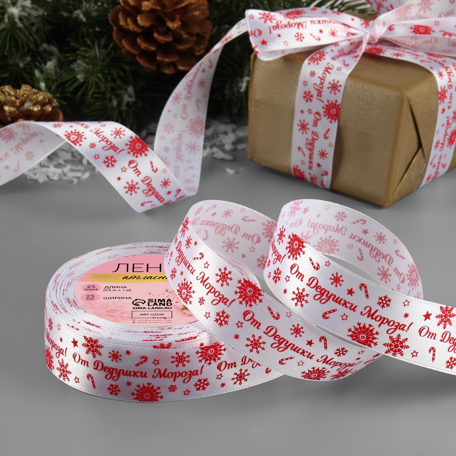 Лента атласная «От Дедушки Мороза», 25 мм, 23±1 м, белая