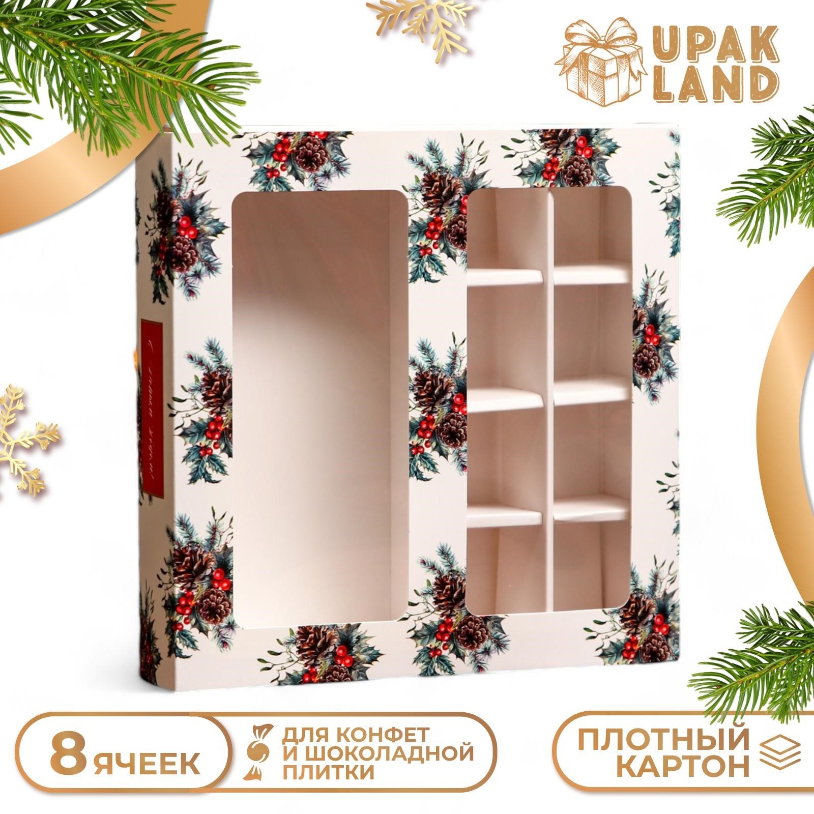 Коробка под 8 конфет и шоколад «С Новым годом!», 17.5×17.5×3.5 см