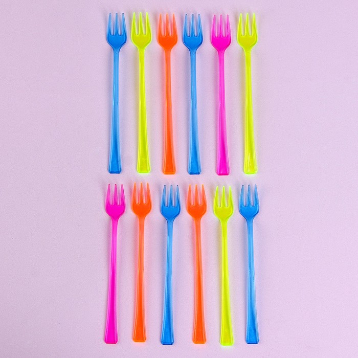 Вилки пластиковые, в наборе 12 штук, прозрачные цветные