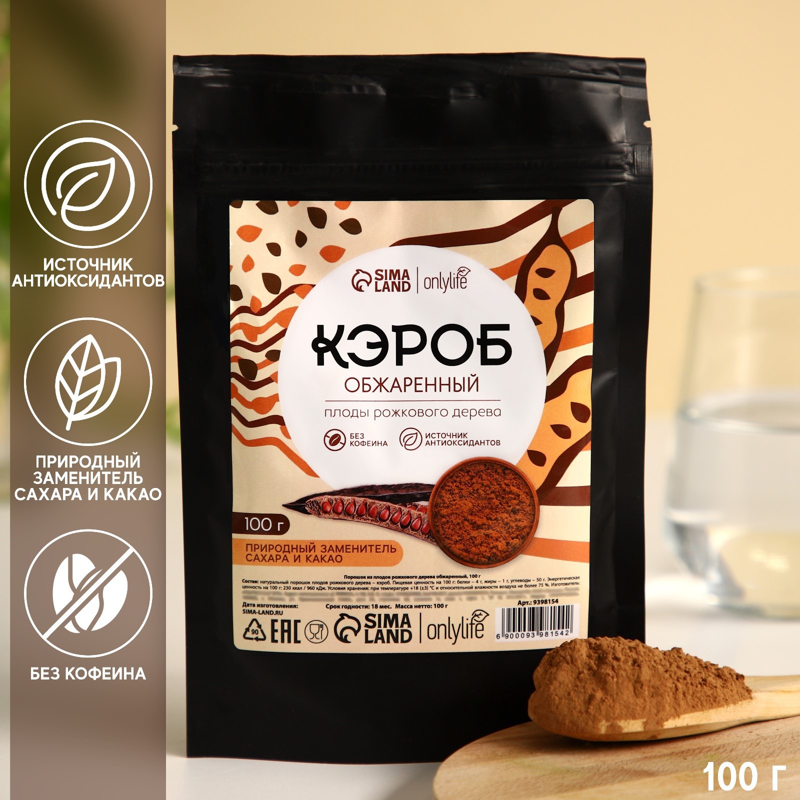 Onlylife Кэроб обжаренный, природный заменитель сахара и какао, 100 г