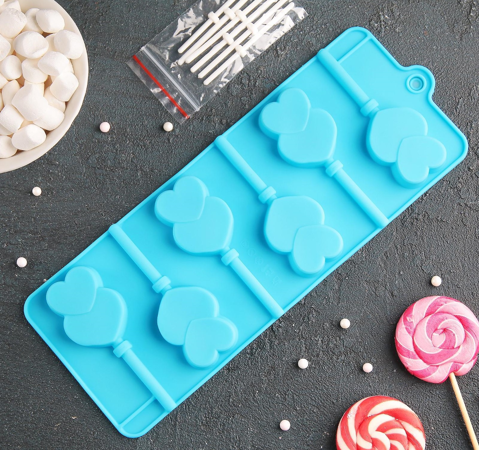Форма для леденцов «Влюблённость», 9,5×24×1 см, 6 ячеек, цвет МИКС