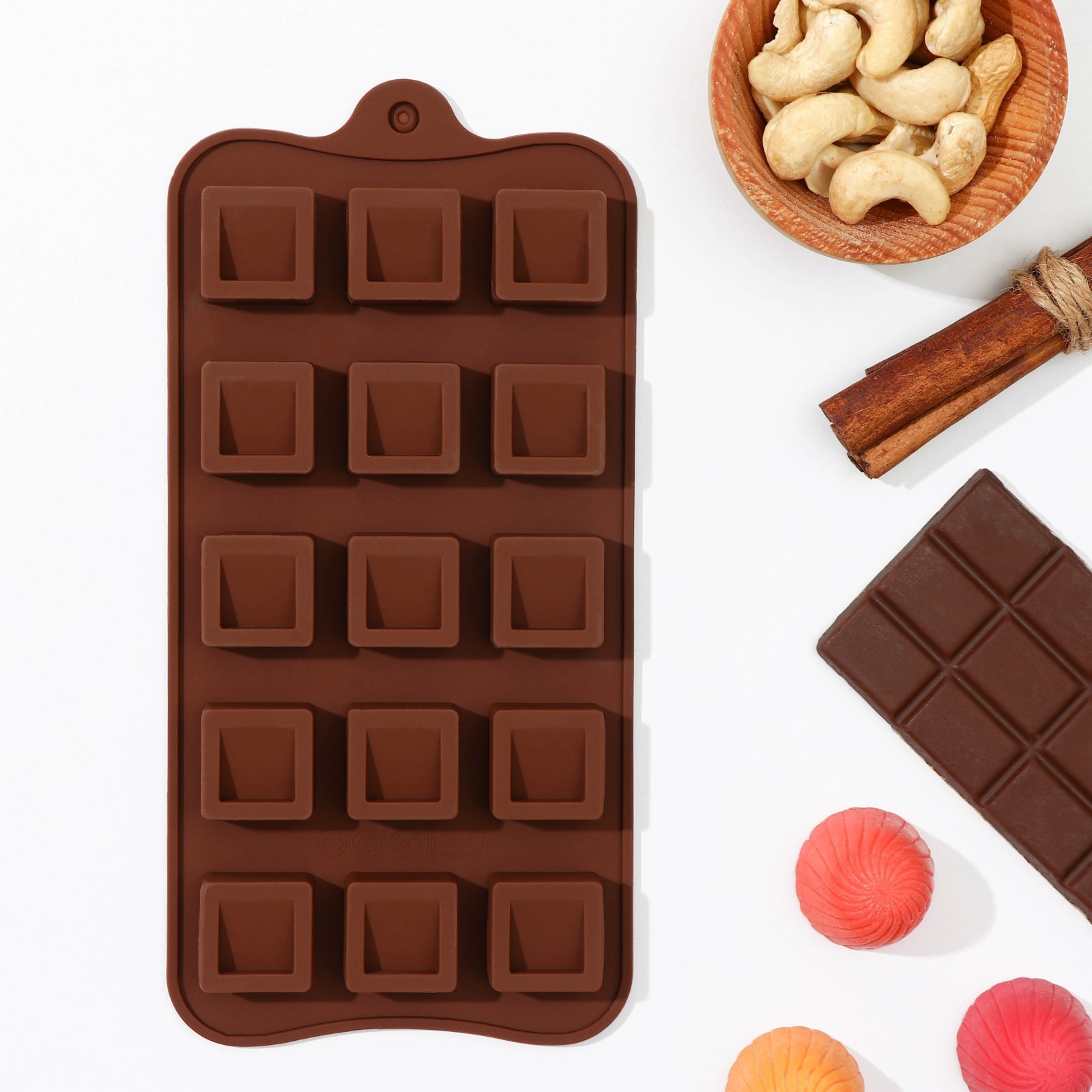 Форма для льда и кондитерских украшений «Кубики», 22×11 см, 15 ячеек (2,3×2,3×3 см)