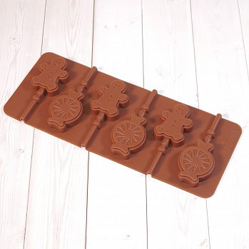 Силиконовая форма для леденцов "Леденец и пряня" 24*10 см, 6 ячеек