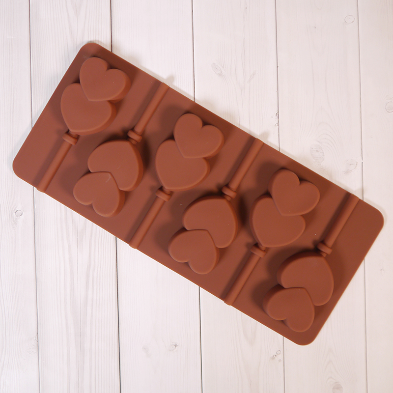 Силиконовая форма для леденцов "Сердце двойное" 24*11, 6 ячеек