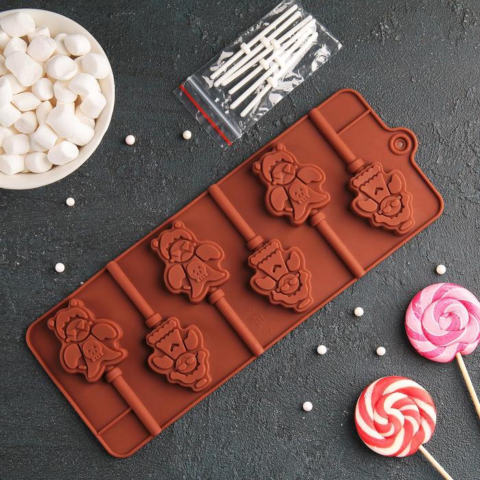 Силиконовая форма 25×9,5 см «Ангел и демон» с палочками, 6 ячеек (5×3 см), цвет МИКС
