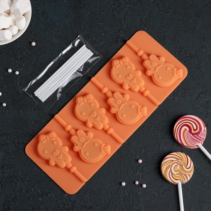Силиконовая форма «Девочка, мальчик», 24×9,5 см, 6 ячеек, с палочками