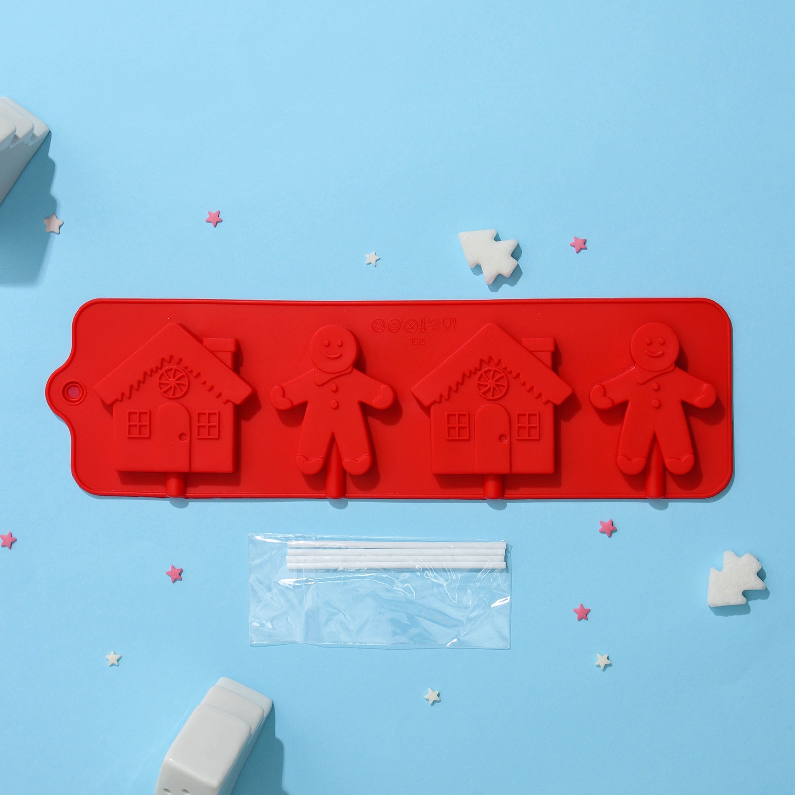 Силиконовая форма для леденцов «Дом для имбирного пряника», 31×9 см, 4 ячейки