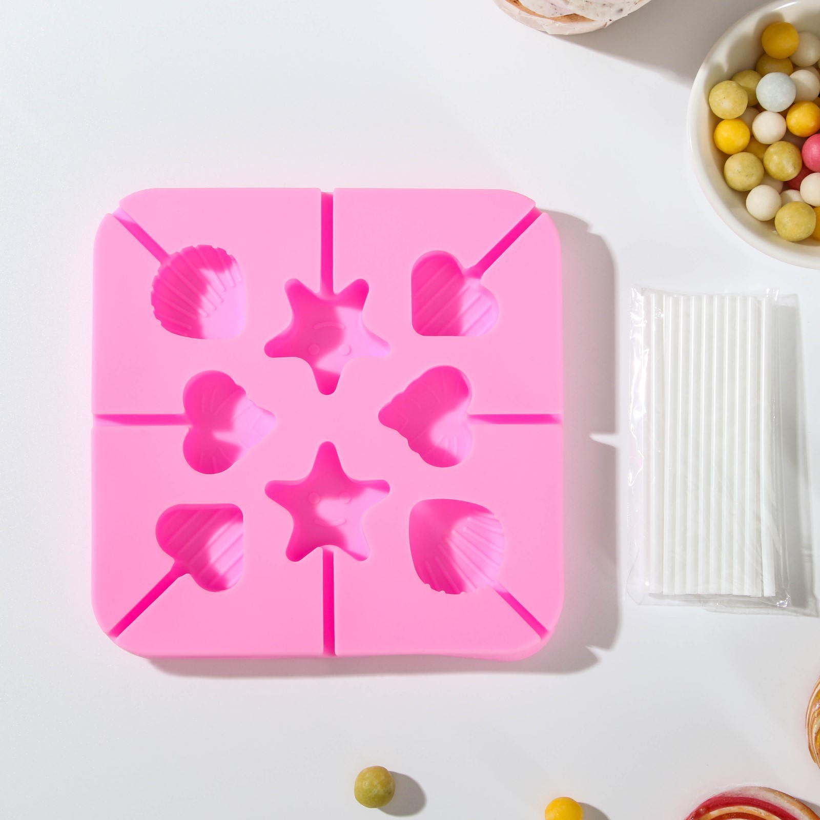 Силиконовая форма для леденцов «Морской берег», 8 ячеек, 12,5×12,5×1,5 см, с палочками, 20 шт,