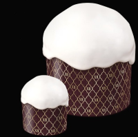 Одноразовая бумажная форма для выпечки дрожжевых изделий (куличей, панетоне и др.) и другой выпечки золотого цвета с красным рисунком. Диаметр 90 мм, высота 90 мм. Плотность бумаги 80 г/м2.