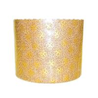 Одноразовая бумажная форма для выпечки дрожжевых изделий (куличей, панетоне и др.) и другой выпечки бежевого цвета с золотым рисунком. Нижний диаметр 90 мм, верхний диаметр 70 мм, высота 85 мм. Плотность бумаги 95 г/м2.