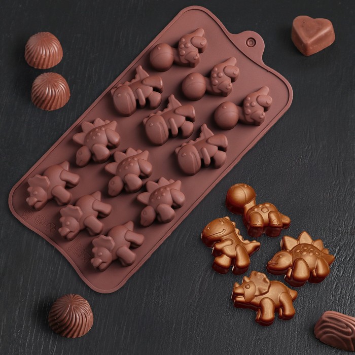 Силиконовая форма «Дино», 21×11 см, 12 ячеек (4×2,5×2 см)