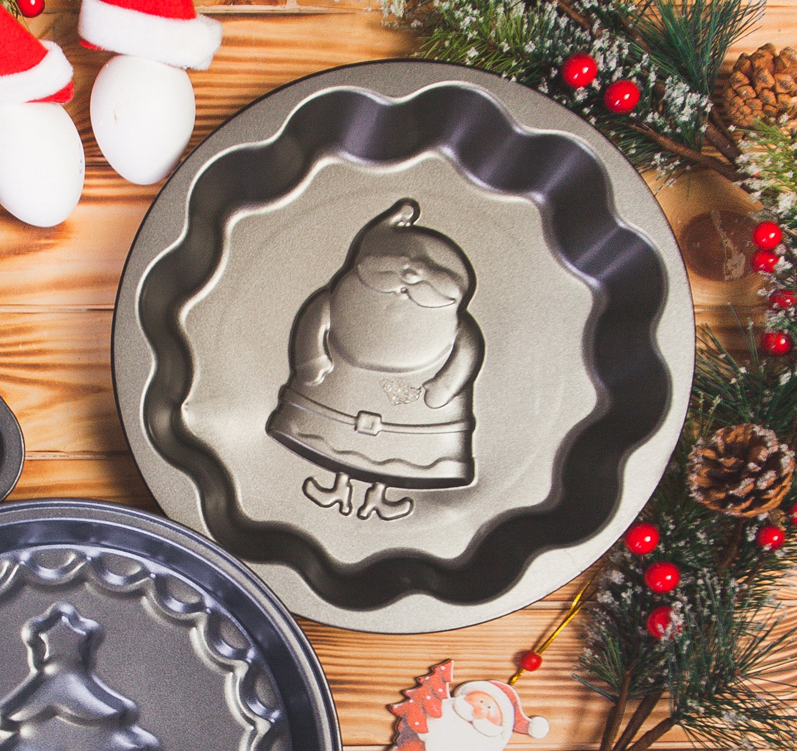 Форма для выпечки «Дед мороз. Волнистый круг», 25×4 см, антипригарное покрытие Новый год
