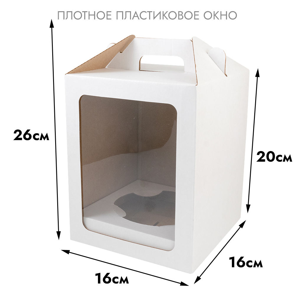 Коробка для Кулича, Бенто с окном 16*16*20 см, белая, плотный картон